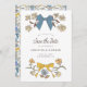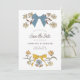Elegant och coquette sparar datumkortet med hand plockade som illustration av knärör och blommor i blått och gult färg. Du kan lägga till ett foto på baksidan.