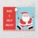 Lustigt badminton-helgdagskort med tecknad Santa Spelande badminton.