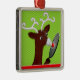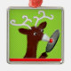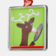 Julens tecknad spelar badminton, håller en racket, med en skyttelkock på näsan.