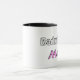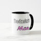 Badmintonmoder. Vrolijke mok. Kleuren: roze, med zwart. Leuk om als trotse moeder te dragen.