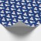 Badminton Shuttlecocks Sporty Wrapping Papper. Vita skyttlecockar mönstrade på en marin blå bakgrund.