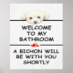 Rolig badrumstryck, bichon frise väggkonst, svart och vit.