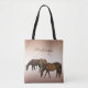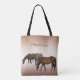 Det är enkelt att anpassa eller ta bort texten på den här väskan med bruna hästar som betar på en varm sommardag på en brons bakgrund.
