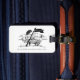 Bagageetikett med Wai den undra grisen som framåt sallying. Detta är för perfekt. Skriv din egna adress på baksidaen, och av går vi!