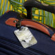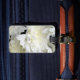 Bagagemärkren med läder fäster bagagebricka