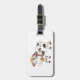 Ett barnresetagg med illustrationen av en vit och svart schweizisk ko som bär en schweizisk komklocka runt nacke och tuggar på en gult vild blomma . Glöm inte att ersätta texten med din egen information. Lycklig resa :) © ArianeC Illustrations