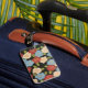 Blommigtens bagagemärke med blå, hett och mjuka nyp, grönt och guld för att få en liten bit på sig. Ta fram väskan! Originalkonsten är handmålad - inte en AI-design.