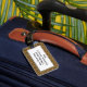 Den här bagagetaggen har en upprepad mönster i gold och svart av konstnären Jayne Wilson. Helt anpassade med ditt namn och adress.