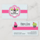 ©Socialitedesigner 2013. Vår eleganta bagerivisitkort en har tre muffins, i ett nyckfullt polka-pricker banret, ljus bakgrund för mönster för turkosblåttsparre och rosabandet. Alla designinslag kan flyttat, resizeds eller tas bort för att passa din bageriaffär. Byt ut precis vår malltext med din information om affären.
