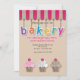 En söt inbjudan till ett gräddande party som innehåller ord "bageriet" hängande från en gång och muffinsar. <br/>() Kortet är enkelt att anpassa med din text, ditt teckensnitt, ditt teckensnitt, färg och ditt val av sex pappra typer.<br/>() Inte exakt vad du är tittar för? Alla våra produkter kan vara designad anpassningsbar för att uppfylla dina behov utan kostnad för extra.<br/>() Kontakta oss helt enkelt på askpixieprints@aol.com.<br/>() Tillgängliga samordningsprodukter: