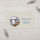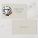 En modern visitkort som presenterar en tecknadillustration av en kock hatt och en kaveluppsättning mot en rutig bakgrund. Ideal för kockar, bagare, kockar, caterers Etc.