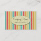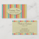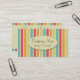 Dessa färgglada visitkortar gjordes med ett bageri eller en konditor i åtanke! De presenterade en texturerad bakgrund av rosa-, kräm-, blått-, orange- & gröntrandar. En kräm cirklar innehåller rum för ditt företagsnamn & en tagline (eller din website). Baksidaen innehåller rum för ditt namn, jobbtitel, och kontakten specificerar.