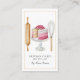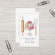 Affärskortet med den här snygga, söta vattenfärgskakans bakverk har verktyg från bagaren, rullstift och visk och en strålande rosa och vit kaka i mitten. Enkelt verktyg av handeln! Ditt namn namnteckning i skripttypografi och namn i ditt företag, med tagglinjen: gjord med kärlek.