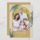Ett elegant julkort med en trendig bågformad bild. Designen accentueras med vintergrönska och bär på en guldbakgrund.