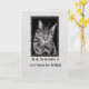 "Belated Birthday card" visar ett grått tabby katt med tass över munnen med bildtexten "Oh oh oh. Jag är så full för jag missade din födelsedag." Inuti visas ett grått tabby katt med texten "Oh, vänta. Strunt samma. Det var bara en hårboll. Hoppas att din speciella dag var härlig!" Texten kan anpassas med egen text och eget teckensnitt.