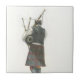 Dekorativ platta med en vattenfärgsmålning av en bagpiper i fullt kilt som går ner på en strand. Bild: Vattenfärg och grafit på penna. Upphovsrätten Dominic A. White. Alla höger reserverade.
