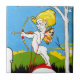 Lite blond cupid-något liknande tecknade figurer med vingar som reser upp hans pilbåge. Illustration av den italienska skämttecknaren Antonio Rubino från täcka av Maggiolata, 1906.
