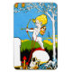 Lite blond cupid-något liknande tecknade figurer med vingar och stort rött skor att resa upp hans pilbågestundanseende på en skalle. Illustration av den italienska skämttecknaren Antonio Rubino från täcka av Maggiolata, 1906.
