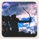 En bågskytt i blå och svarta nyanser ... Pil och båge med blå himmel och moln