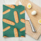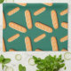 Baguette bread pattern on a green background kökshandduk