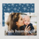 Visa exakt vad du gör med 2020 års familjefoto med vårt roliga Bah Humbug/Bah Humbugh-helgdag-fotokort. Det roliga julkortet visar ditt foto med "Bah Humbugh" i ett vitt, modernt teckensnittsöverlägg med ditt namn och året nedan. Baksidan har en marin blå och vit snöflinga mönster.