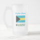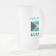 Personlig frostad glasölmugg visar den bahamanska flaggan och ordet BAHAMAS under. Ovan, lägg till ditt namn för en personlig touch eller present. Flaggan är blå, gul och svart. Roligt att använda på vän- eller familjeåterträffar, klubbar och resegrupper. Kan vara den perfekta husvärmegåvan för en hembar. Designen visas på två sidor av muggen.