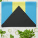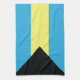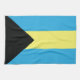 Flagga Bahamasöarna. En svart triangel med akvamarin och gult band. Den svarta symboliserar styrka. Vattenbruket är till för Karibiska havet som omger öarna, och gulten är till för den gyllene sanden av dess stränder.