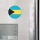 Bahamanska flagga är en vågrät tricolor med en svart schevron. Den använda färgen i flagga är blå, gult, svart. Andelen bahamanska flagga är 1:2. Bahamas-Flagga antogs 1973. Den första användan av den nuvarande utformningen av flagga var 1973. Den sista ändringen av den nuvarande utformningen av Bahamian-flagga gjordes 1973.