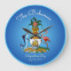 Armen Bahamas jackar på en övertoningsblå bakgrund med datum för land:s oberoende från Storbritannien i texten under bilden.