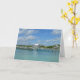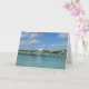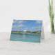 "Bahamas Marina, Underbar Abaco Island" av Catherine Sherman. Fluffy-molnen flyter över en marina på Underbara Abaco-ön i Bahamas. Piers står i den vackra turkosen i Karibiska havet vatten. Detta fotografi togs i november 2017. På baksidan av kortet: Fiskepalarna läggs längs en fiskepir sitta i vatten i Underbar Abaco-ön i Bahamas.