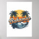Bahamas Retro Sunset Palm Trees Design Poster