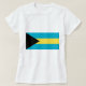 Bahamas-flagga har en svart liksidig triangel på den lämnat, som representerar det Bahamas-folkets enighet och beslutsamhet. Triangeln är inriktad på tre randar med samma bredd som symboliserar naturresursområden. två akvamarinbaserade ränder högst upp och grund i flagga som representerar havet och en guld rand som representerar landet. flagga antogs den 10 juli 1973.