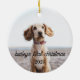 Fira din valps första jul med denna charmiga Cocker Spaniel-prydnad. Med en blank cirkulär design, den bedårande gyllene valpen bär en festlig röd halskrage mot en mjuk utomhushimmel. Personlig text “baileys första jul 2026” ger en minnessakskänsla. Perfekt för att hänga på ditt träd, denna prydnad fångar minnen och ger en varm, festlig stämning till vilken juldekoration som helst. Helt anpassningsbar för foto och text.