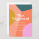 Den här färgstarka bröllopsinbjudan för snyggt har en modern, hand plockade-geometrisk design i mörk tealblått, korallblått orange, persika, guldfärgad gult och lätt lilak rosa/lila. Retro-formaterad typografi lägger till en roligt pekare! På baksidan finns en QR-kodmall för att dirigera gäster till webbplatsen bröllop. Anpassa eller ta bort om du inte vill.