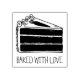 Rubber frimärke har en originalmarkörillustration av ett segment av morotakor, med BAKED WITH KÄRLEK i ett typsnitt av roligten.