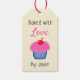 Gör ett intryck genom att inkludera en personlig presentetikett med dina hemmagjorda artiklar. Bakat med kärlek är dekorerat med en söt cupcake i rosa och blått med en röd körsbär på toppen. Baksidan kan anpassas med dina egna ord. Detta är en unik design av LyricalCrafts.