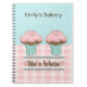 Använd denna gulliga personliganteckningsbok för att hålla alla dina favorit- recept, målfakta. lista eller noterar. Anteckningsboken presenterar ett ljust - blåttbakgrund med längst ner rosa kontroller och ord "som bakas till perfektion" med två muffins ovanför den. Använd premademallen för att sätta in ditt egna uttrycka. Underbar inflyttnings- gåva eller för någon.
