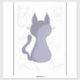 Teckning av en katt med rygg till oss och dockor av andra katter i bakgrunden