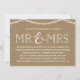 Den här vackra, rustika bröllopsjubileumsinbjudan har "Herr & Fru" skrivet i vintage-typografi, en lysande sträng hjärtformade lampor och en bakgrund i kraftpapper.