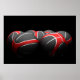 Isolerad grupp med 7 basketbollar med färg röd, svart och silver på en svart bakgrund med mörkt ljus
