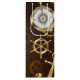 Brunt träbakgrund med havs-, mekanisk åda, antika rattar, gyllene ankare och olika guld- och brassväxlar. Steampunk stil.