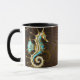 Bakgrund av trä med mekanisk sjöhäst mugg