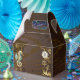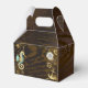 Bakgrund av trä med mekanisk sjöhäst presentaskar