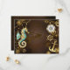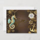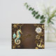 Brunt träbakgrund med havs-, mekanisk åda, antika rattar, gyllene ankare och olika guld- och brassväxlar. Steampunk stil.