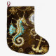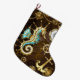 Bakgrund av trä med mekanisk sjöhäst stor julstrumpa