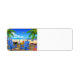 BAKGRUND FÖR BAKGRUND FÖR BEACH PATIO LYCKLIG VACA RETURADRESS ETIKETT
