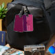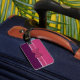 Bakgrund för rosa av Polka dots-armbåge i rutt, gi Bagagebricka