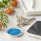 Bakgrund med blå lyra rund silverfärgad nyckelring