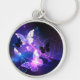 Bakgrund med nattfjärilar rund silverfärgad nyckelring