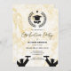 En modern och elegant studenten-tematisk bakgrund med svarta silhuetter av student med examensbevis på en marmorerad beige och vit texturerad bakgrund. Utformningen kröns med en lagerkrans, en studentmössa och en diplomatikon, perfekt för inbjudningar.